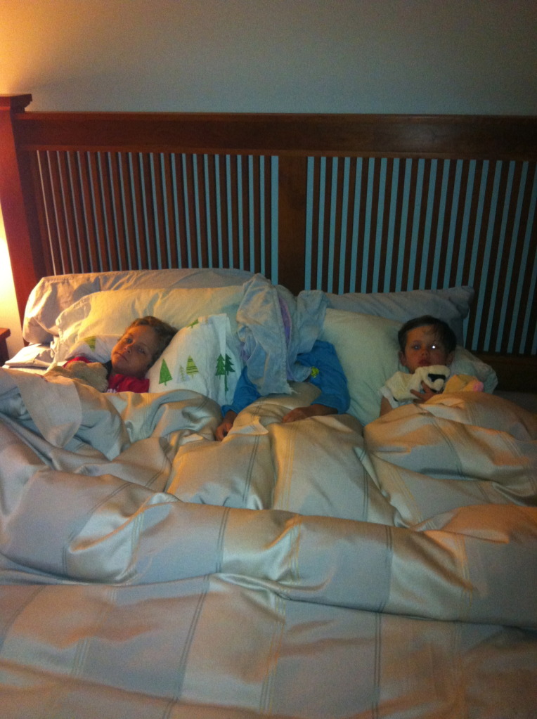This quartet ran the party, in a good way. They helped with food and drink, they performed interpretive dances on the back deck to some ‘Tween songs, and they busted the stew out of the pinata. Then they gathered their loot and retreated to my bedroom to watch Happy Feet 2, all piled up together on a pallet of pillows to rival none other.