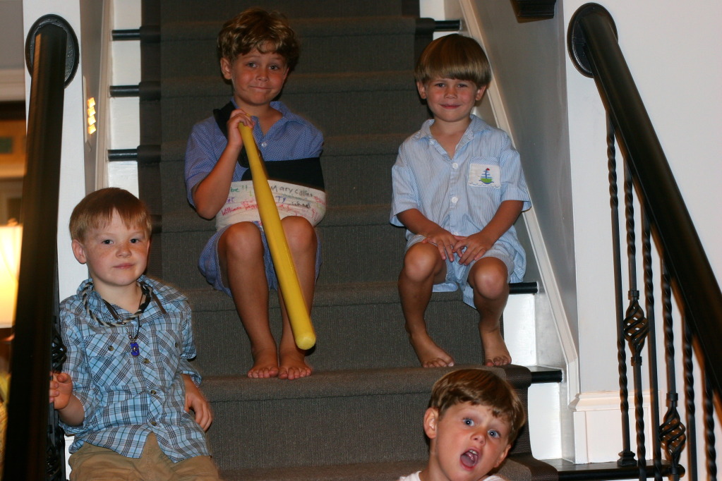 Let us at that Pinata! We want candy! (Clockwise from far left: Ty, Jack, Theo, Tucker)