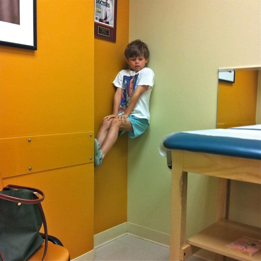 Here’s our other tough guy, climbing the walls at our pediatrician’s office. I was climbing the walls in the other corner seeing as this visit was the 2nd time in the same day that we’d been in there.