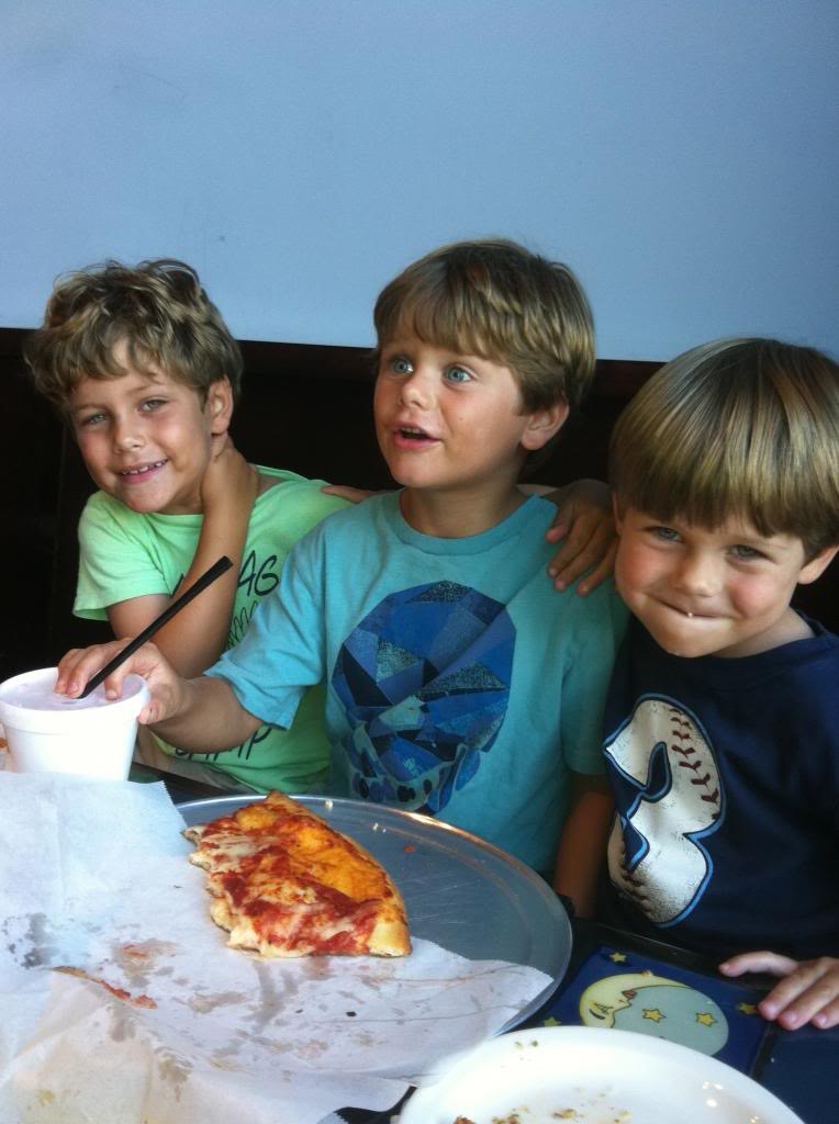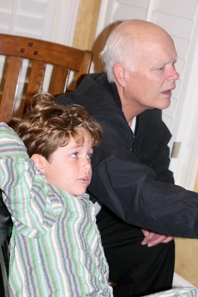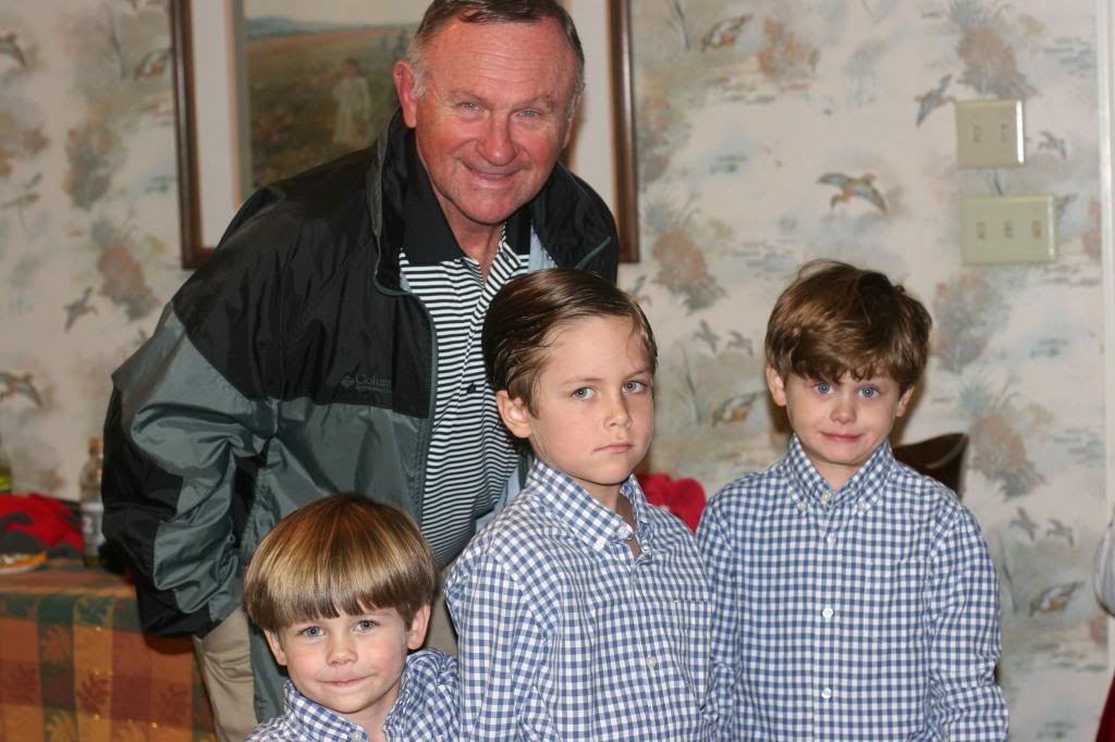 The boys with Grandpa. This is what 3 days of being maxed out on steroids looks like on Tucker. At least he has his clothes on. 🙂