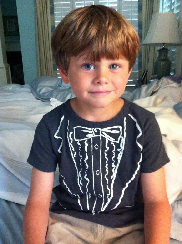 School’s out! No more uniforms! Tucker takes it up a notch on Day 1 of summer break with the ever-classic tuxedo shirt.