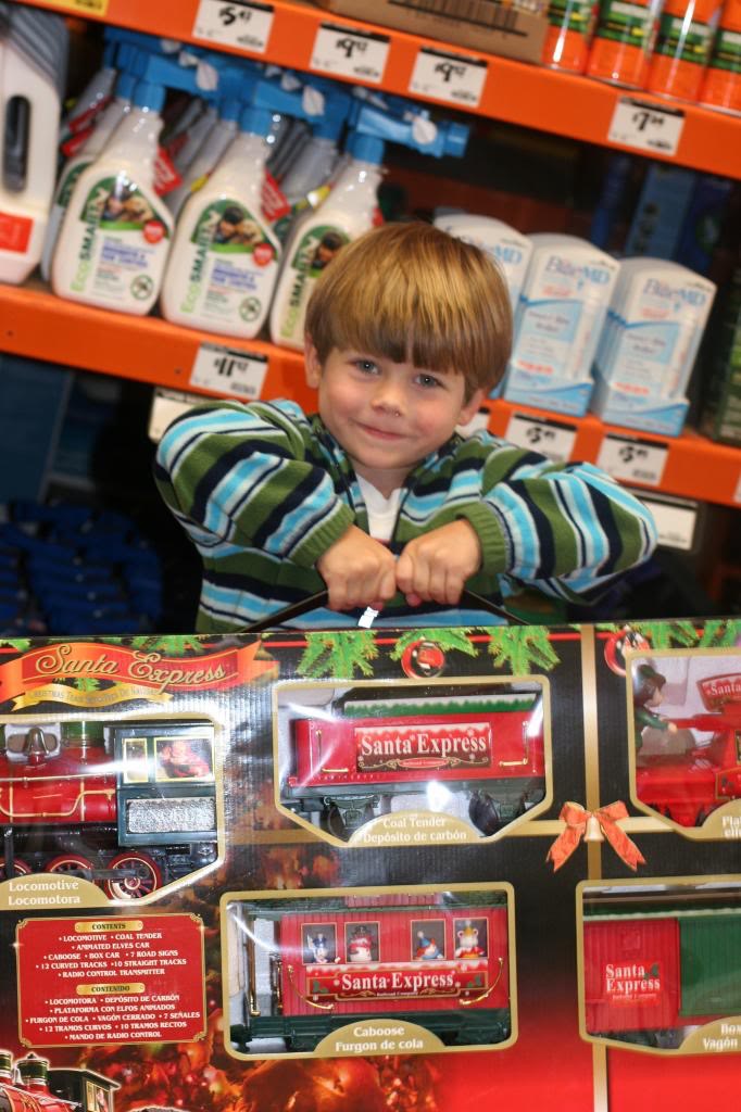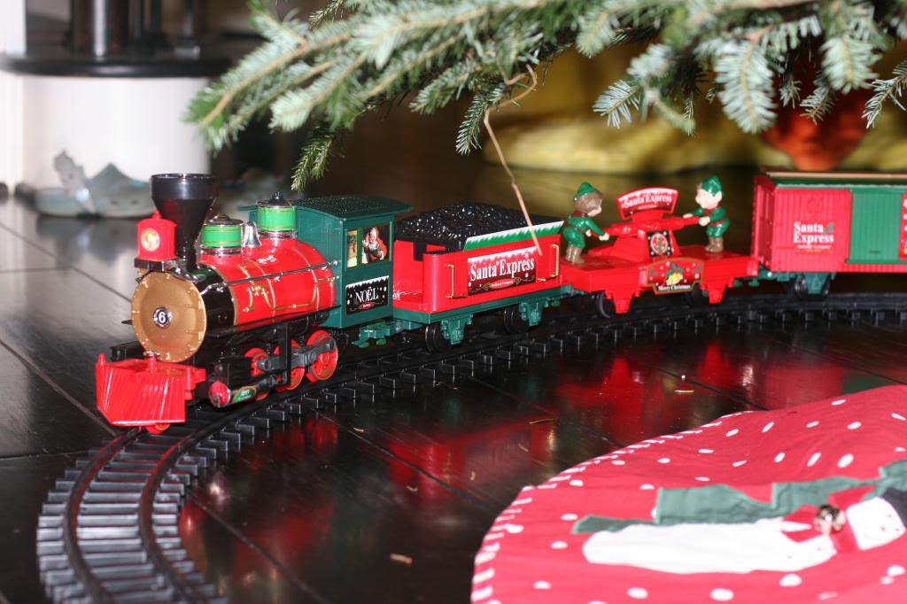 We passed on the flamingo (its laser-thin neck was just begging for a short life span) and the Elmo (Theo is way past Elmo but not way past being mocked by his big brothers for once loving Elmo–he’ll likely never hit that milestone). The train, of course, called out to several of the males in my family. Ergo, when the rubber hit the road, we didn’t actually save that money by getting the cheaper tree because Theo was able to convince Russ that we really, weally needed this train.