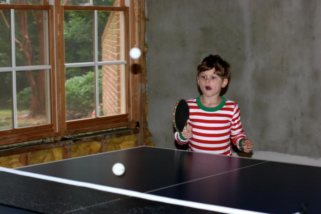 Santa brought us a ping-pong table! Santa suspended gravity in our basement, too–for ping pong balls at least.
