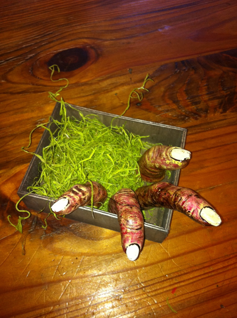 It’s no secret we love us some Halloween around here. Check out our newest decoration: a box of fingers. Um, yeah.