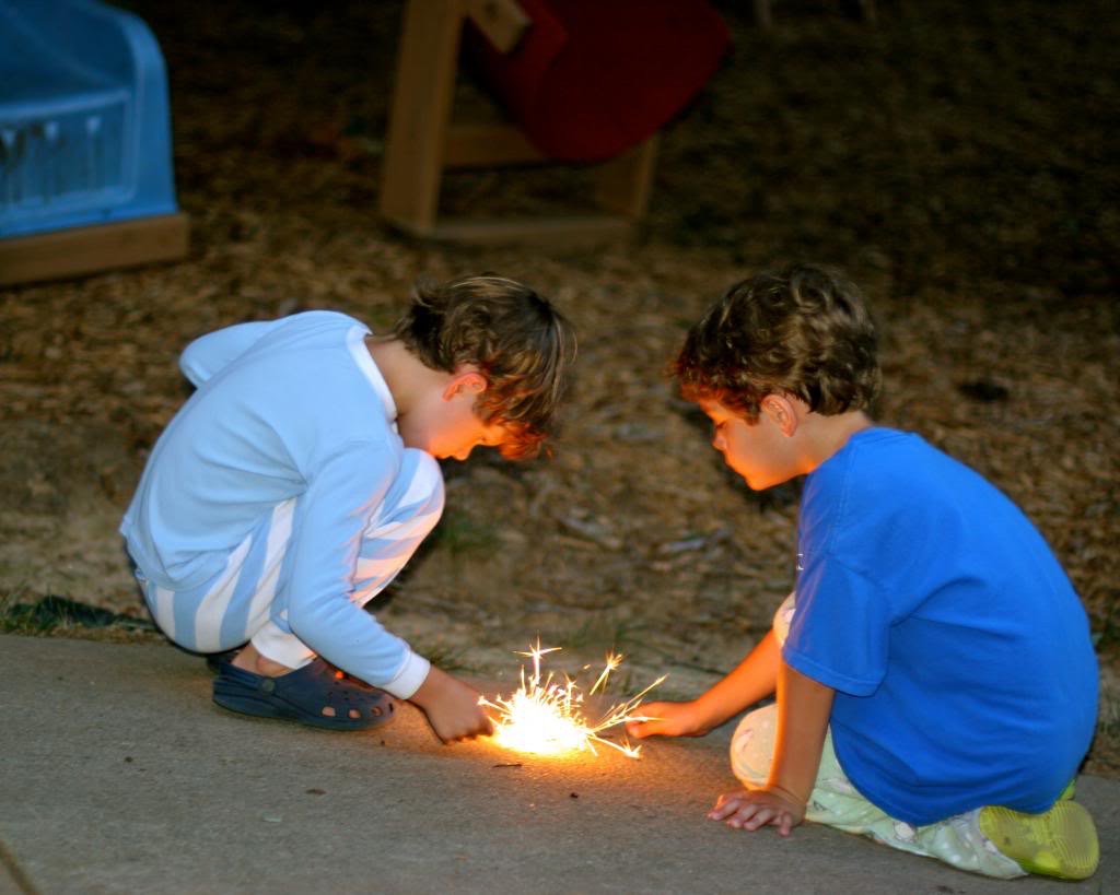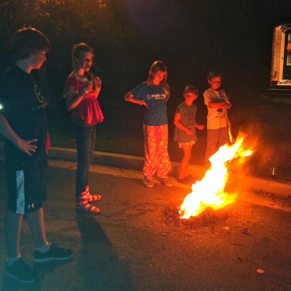 The cul-de-sac firework festivals with our neighbors have now morphed into bonfires. Right smack on the pavement. There were adults present, I assure you–and not just the one photographing the event.