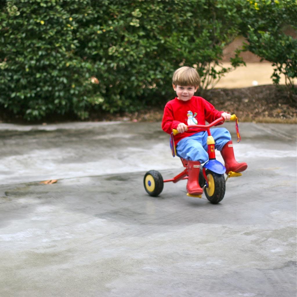 Remember me saying Theo loved wheels? He outgrew his tricycle by late March, so I hauled up the Tiger bike (a little 15-inch hand-me-down training bike we’ve had since Jack was 3) and was going to let him have it after I reattached the training wheels. Theo wanted to give it a whirl sans training wheels, so I said, “what the heck.” He hopped on and took off peddling by himself. No wobbles, no falls. At 3 years, 7 months old.