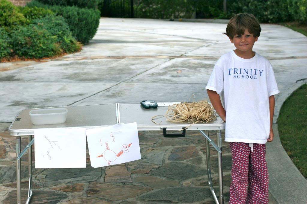 Our little entrepreneur. Tucker’s first money-making adventure of the summer: selling bird calls. Again, we can’t make this stuff up.