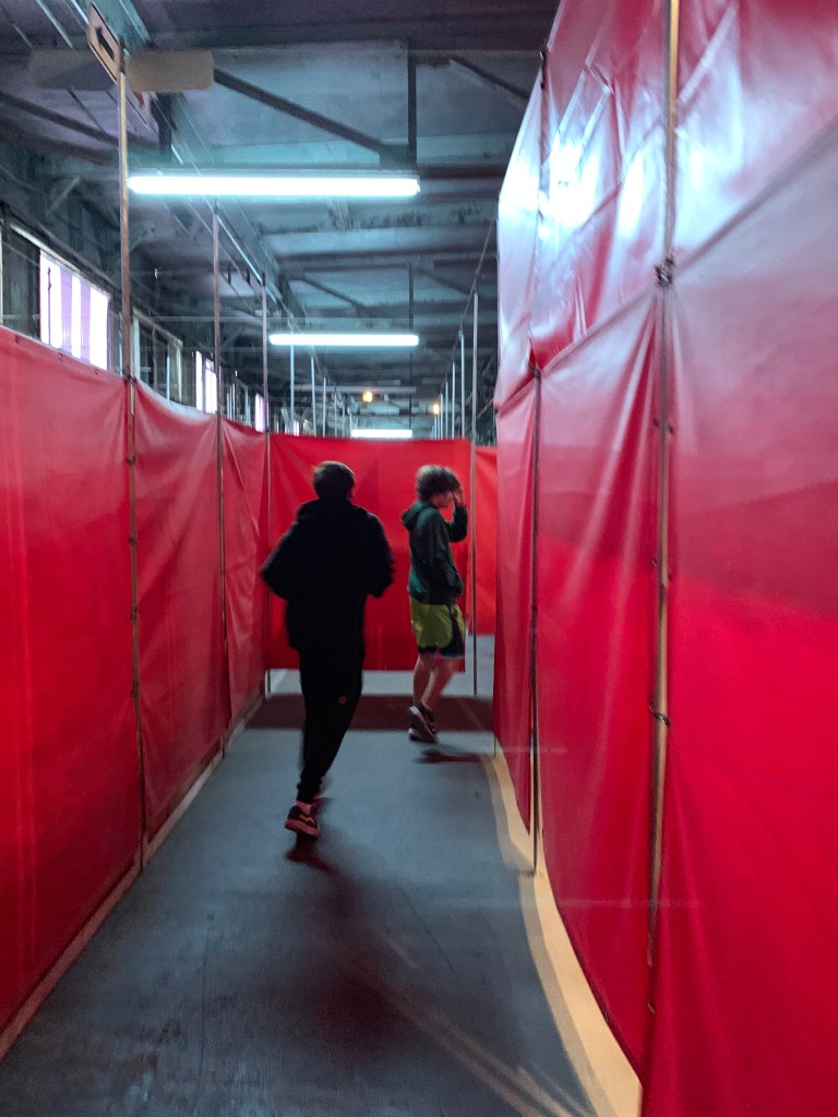 I’d read mixed reviews about SOS Labyrinthe, but we all were entertained. It’s definitely not your typical escape room; instead, you have to find 4 different boxes and get a card stamped at each one–all while maneuvering a crazy maze. There are lots of switchbacks and dead-ends and turn-arounds and not very much intelligence is actually needed, but we made it out in less than an hour.