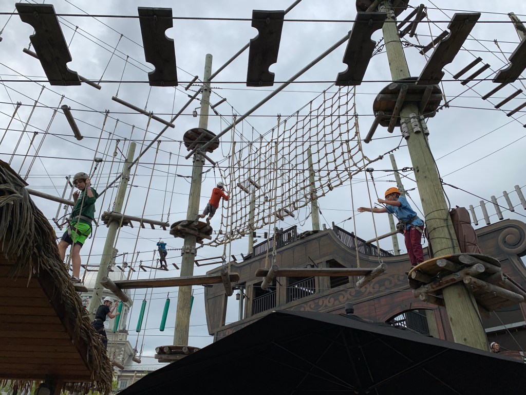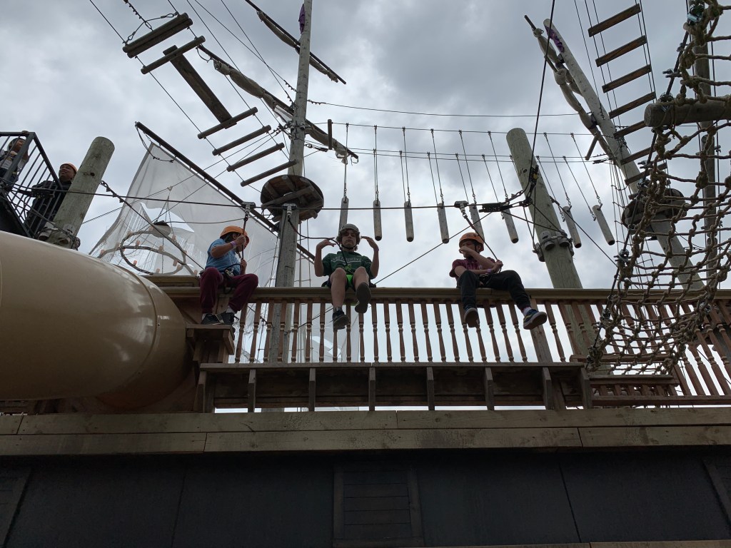 We stumbled across this magnificent ropes course…and the boys were set for 2 hours. Russ and I roamed a little on our own (always within view of the ropes course situation), and then headed up the street a bit for a snack once they were finished.