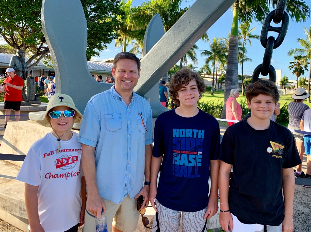 There was a pre-show buffet featuring “traditional Hawaiian luau foods” along with some hula dancing. When they asked for volunteers, Tucker and Theo showed that they had taken the family pact to heart.